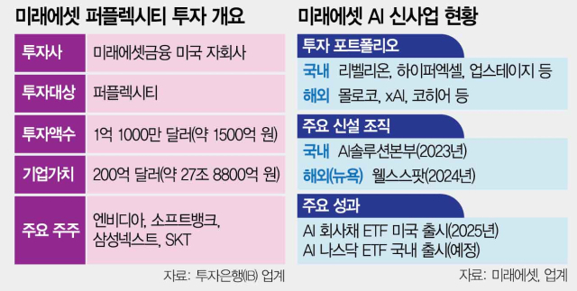 업계 관계자는 “퍼플렉시티는 구글의 검색 시장 지배력에 맞설 가장 강력한 AI 도전자 중 하나”라며 “금융에 특화된 AI 언어모델(LLM)을 가진 회사로 평가 받고 있는 것도 미래에셋의 투자 배경”이라고 말했다.